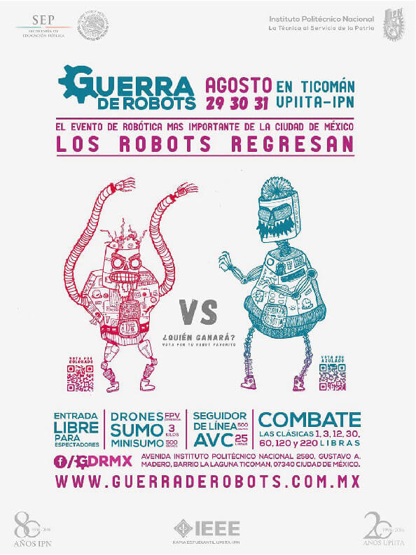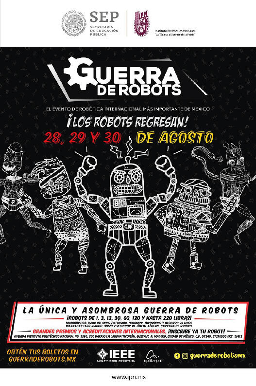 Más de 12 años de experiencia, la participación de 72 instituciones públicas y privadas, 300 equipos de 6 países, mas de 1,350 prototipos registrados y 16 categorías hacen a guerra de robots el evento de robótica más grande de México.